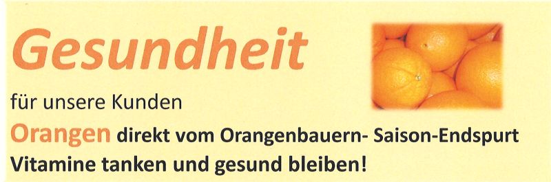 Frischer geht`s nicht! Schon unmittelbar nach der Ernte landen die Orangen bei uns im Laden! Holen Sie sich die Vitamine nach Hause und stärken Sie ihr Immunsystem! Gerade in der momentanen Situation brauchen wir viele Vitamine im Kampf gegen den Virus. Die späte Sorte gibt es nur noch ein paar Wochen, langsam beginnt der Orangen-Endspurt. Sie ist unwahrscheinlich geschmackvoll und vitaminreich! Überzeugen Sie sich selbst und bleiben Sie gesund!