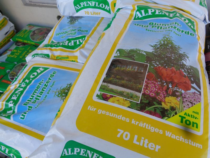 Wir haben eine große Auswahl an hervorragenden Erden, einige davon haben wir schon vorgestellt, unsere Premiumerde die Terrastar sowie die Gemüse- und Hochbeeterde. Heute stellen wir die Alpenflor Blumen- und Pflanzerde vor. Sie ist eine ideale gebrauchsfertige Spezialmischung für alle Topf-, Balkon und Terrassenpflanzen in Gärtnerqualität. Der hohe Anteil an Tonmineralien versorgt die Pflanzen mit zusätzlichen Spurenelementen und gewährleistet eine schnelle und gleichmäßige Wasserversorgung. Alpenflor Blumen- und Pflanzerde ist ein Spezialprodukt für die Anwendung im Hobbygartenbereich. Sie verhindert Staunässe, mildert Düngefehler und sorgt für eine optimale Belüftung und Strukturstabilität.