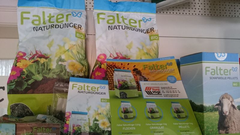 Seit letztem Jahr haben wir einen ganz besonderen Dünger im Laden - Falter Naturdünger, direkt aus unserer Region! Genauer gesagt aus Oberbayern, eigens von einem Landwirt hergestellt. Natürlicher und regionaler geht`s nicht. Er ist einsetzbar im ganzen Garten: Im Gemüsegarten, um gesundes, schmackhaftes Gemüse zu ernten, zur Rasendüngung, für die Obstbäume und für die Blumen- und Zierpfanzen! Den Dünger gibt es in Pellets oder in Flocken und die Gabe erfolgt durch einfaches verstreuen. Die Flocken eignen sich hervorragend auch fürs Hochbeet zum untermischen! Überzeugen Sie sich selbst und tun sie ihren Pflanzen und der Natur etwas Gutes!