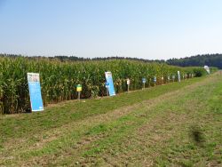 Anschließend wurden die neuen Maissorten begutachtet. Die Vertreter der Maisfirmen und Züchter agaSaat, Eurocorn, Maisadour, Saatbau Linz und DSV präsentierten ihre neuen Sorten für die kommende Saison mit 27 verschiedenen Züchtungen. Neu war heuer, dass eine Teilfläche mit Fahrgassen gebaut wurde mit späterer Gülledüngung und so verglichen wurde.