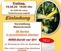 Geisenhausen/Hohenegglkofen. Am Freitag, 19.08.2022 findet von der Firma Agrarhandel Vögl Geisenhausen um 19:00 Uhr der Maisfeldtag in Oberfimbach statt. Es wird die Demo-Anlage mit insgesamt 29 Maissorten von den 5 verschiedenen Züchtern agaSaat, MasSeeds, Eurocorn, Saatbau Linz und Dekalb präsentiert. Die Vorstellung erfolgt gemeinsam mit den Vertretern der Firmen. Die einzelnen Sorten werden vorgestellt und Ihre Eigenschaften erläutert. Es wird auf den Umgang mit Trockenschäden und den optimalen Silierzeitpunkt eingegangen. Obwohl Mais einiges kompensieren kann, stellen der Klimawandel, die Hitze und ungleiche Niederschläge auch den Mais und die Züchter vor große Herausforderungen.