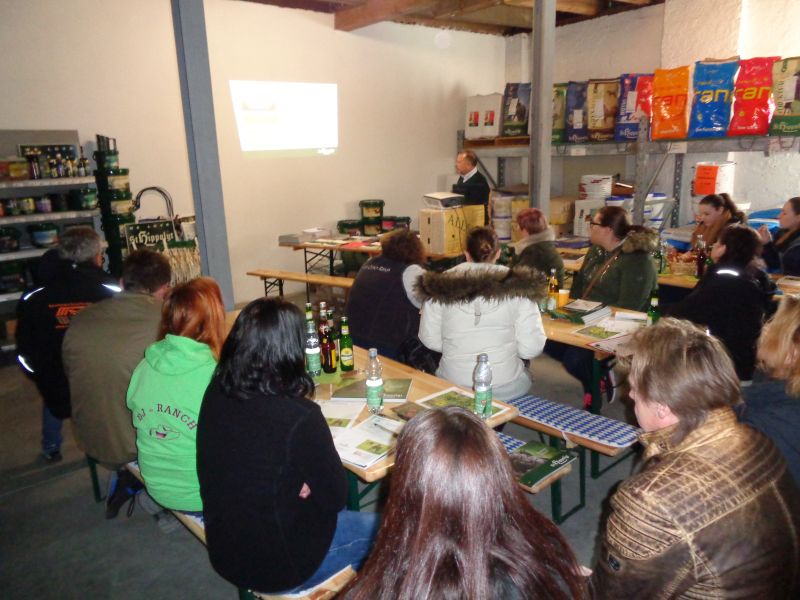 Die Woche vom 08.04.19 bis 14.04.2019 stand in Geisenhausen ganz unter dem Motto „Gesundheit und Wellness“. Die Firma Agrarhandel Toni Vögl GmbH griff dieses Thema für Pferde auf und veranstaltete einen Vortrag über „Gesunde Pferdeernährung“. Am verkaufsoffenen Sonntag 14.April fand vormittags im Betrieb zusammen mit der Firma Hippolyt ein Futterseminar für Pferde statt. Herr Horn von St. Hippolyt hielt den Vortrag und informierte über wichtige Details der gesunden Pferdefütterung. So startete Herr Horn mit Grundlagen. Er erläuterte, wie die Pferde früher gefüttert wurden und verglich dies mit heute. Es wurde in Anbetracht auf Größe und Gewicht des Pferdes verdeutlicht, wie viel Futter im Zusammenhang mit Bewegung und Aktivität des Pferdes richtig ist und welcher Energiebedarf beim Tier somit vorhanden ist. Des Weiteren ging Herr Horn auch auf den Verdauungstrakt des Pferdes ein und die Verweildauer des Futters in den einzelnen Abschnitten. Im Anschluss an die Grundlagen wurden auch Problemfälle in Augenschein genommen. Vor allem schleichende Mangelerscheinungen sind oft schwer erkennbar. Anfangs sind es oft nur Kleinigkeiten wie z.B. Trägheit des Tiers oder Veränderungen am Fell, die auf einen Mangel hinweisen. Wenn diese Anzeichen allerdings übersehen werden, kann es zu ernsthaften Problemen bis hin zum klinischen Verlauf kommen. Zu guter Letzt sprach Herr Horn über Seniorenpferde und über die Besonderheiten, was bei alten Pferden zu beachten ist. In seinem Vortrag stellte er ein Pferd eines Betriebs vor, das stattliche 38 Jahre alt war. Ebenso wurde das Thema Koliken und Kotwasser angeschnitten. Insgesamt war die Veranstaltung hochinteressant und sehr kurzweilig. Herr Horn erläuterte sehr Wichtiges und Wissenswertes im Bereich einer gesunden Pferdeernährung. Im Anschluss bot er an, gerne noch in einzelnen Pferde-Problemfällen der Gäste zu beraten. Nahezu alle Besucher nutzten diese Gelegenheit der Einzelfutterberatung. Alle Beteiligten waren begeistert von der Veranstaltung und gaben ein positives Feedback.