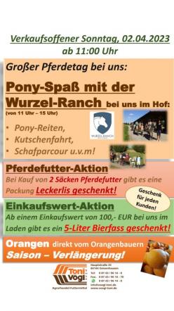 Pony-Spaß mit der Wurzelranch am Verkaufsoffenen Sonntag, 02.04.2023