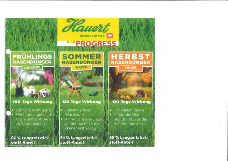 Sie wollen den schönsten Rasen? Dann testen Sie doch die Profi-Rasendünger von uns und starten mit dem Frühlings-Rasendünger von Hauert. Die Vorteile sprechen dafür: Jetzt düngen und 100 Tage lang die Wirkung sehen, durch den hohen Langzeitstickstoff-Anteil von mindestens 60 %! Das spart Arbeit und schont die Umwelt. Auch bei sandigen Böden besteht keine Auswaschungsgefahr. Der Rasen wird schnell gekräftigt und wirkt auch bei niedrigen Temperaturen gerade jetzt auch zu Saisonbeginn! Der Dünger sorgt für einen dichten natürlich grünen Rasen, der Moos und Unkraut verdrängt. Es handelt sich um Sphero-Granulat – das ist staubfrei und perfekt streufähig. Der Frühlingsrasendünger von Hauert ist ein perfektes System für alle Wachstumsphasen in Profi-Qualität. Also los geht`s - starten Sie in die Rasen-Saison – KICKOFF!