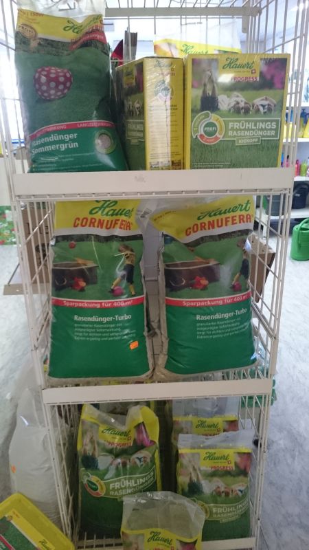 Jetzt braucht ihr Rasen Nährstoffe! Das warme Frühlingswetter tut ihm gut und er kann sich vom Winter gut erholen. Ideal ist es, wenn der Rasen im Frühling vertikutiert wird, damit der dichte Filz entfernt wird und der Rasen wieder mehr Luft bekommt. Um den Boden etwas Gutes zu tun, empfiehlt es sich Bodenaktivator oder Kalk zu streuen, besonders, wenn viel Moss im Rasen vorhanden ist. Das ist ein Zeichen, dass der Boden zu sauer ist. Wenn der PH-Wert im Boden passt, dann wird die Ursache von Moos behoben und es kommt erst gar nicht. Um den PH-Wert zu verbessern, gibt es gute Möglichkeiten, wie z.B. den Bodenaktivator oder Algenkalk. Das letzte ist neu bei uns erhältlich und für den ganzen Garten und für jeden Einsatz, ob Gemüsebeet, Blumen oder Rasen hervorragend geeignet. Ihr Boden wird es ihnen danken. Für den nächsten Schritt, der Düngung, haben wir große Auswahl. Egal ob sie lieber natürlichen oder mineralischen Dünger bevorzugen, wir haben für jeden Bedarf etwas passendes. Ob Sie große Flächen bewirtschaften, oder nur für den Kleingarten, egal ob Sie etwas günstiges suchen oder den Profi-Dünger wollen. Wir beraten Sie gerne und suchen für Sie das Passende! Kommen Sie vorbei und überzeugen Sie sich selbst!